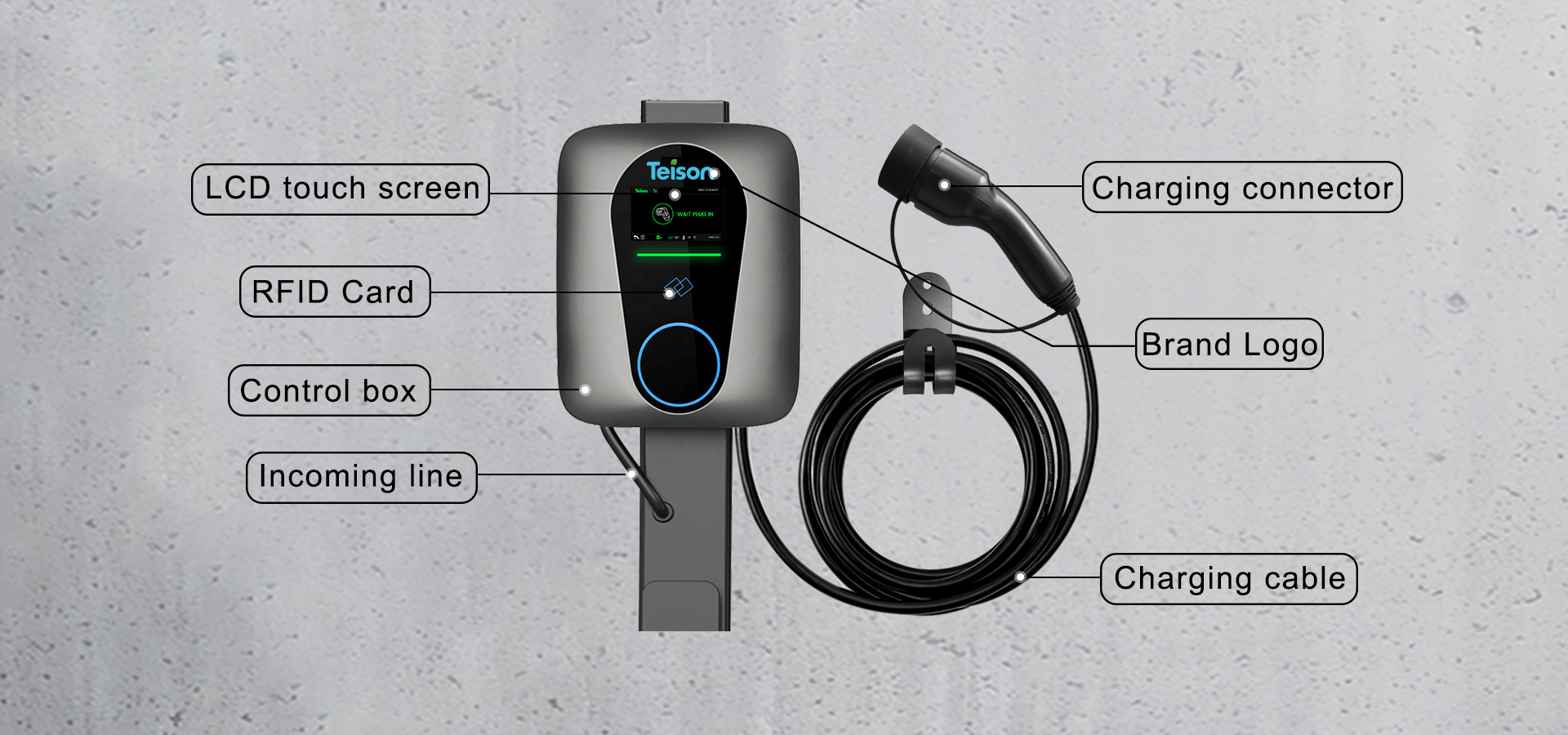 Умная настенная станция для зарядки электромобилей AC с OCPP